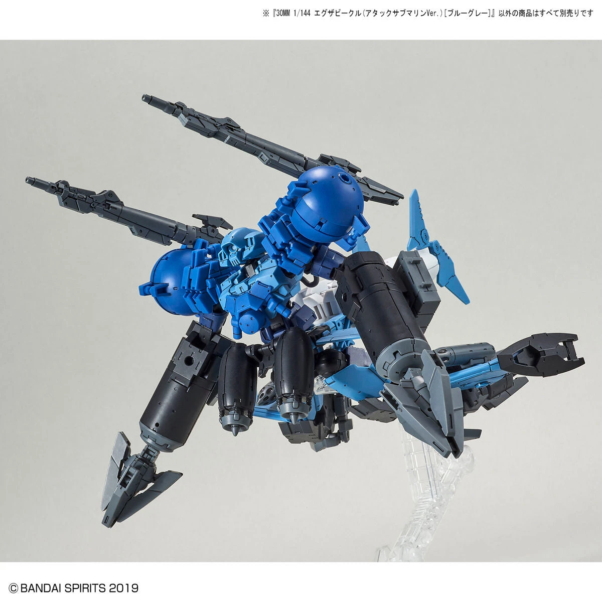 The 30 Minutes Missions EXA, or Extended Armament, continues with the Attack Submarine! By changing the parts, it can be transformed into 3 types: ray type, saw shark type, and hammerhead shark type. It can also be used as a backpack for 30MM mecha or other similar sized model kits.