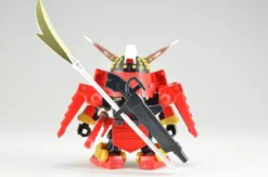 This super deformed model kit features the Musha Gundam and comes equipped with feudal era looking weapons; the Naginata, katana called the Bukyuumaru and a rifle known as the Tanegashima Rifle.