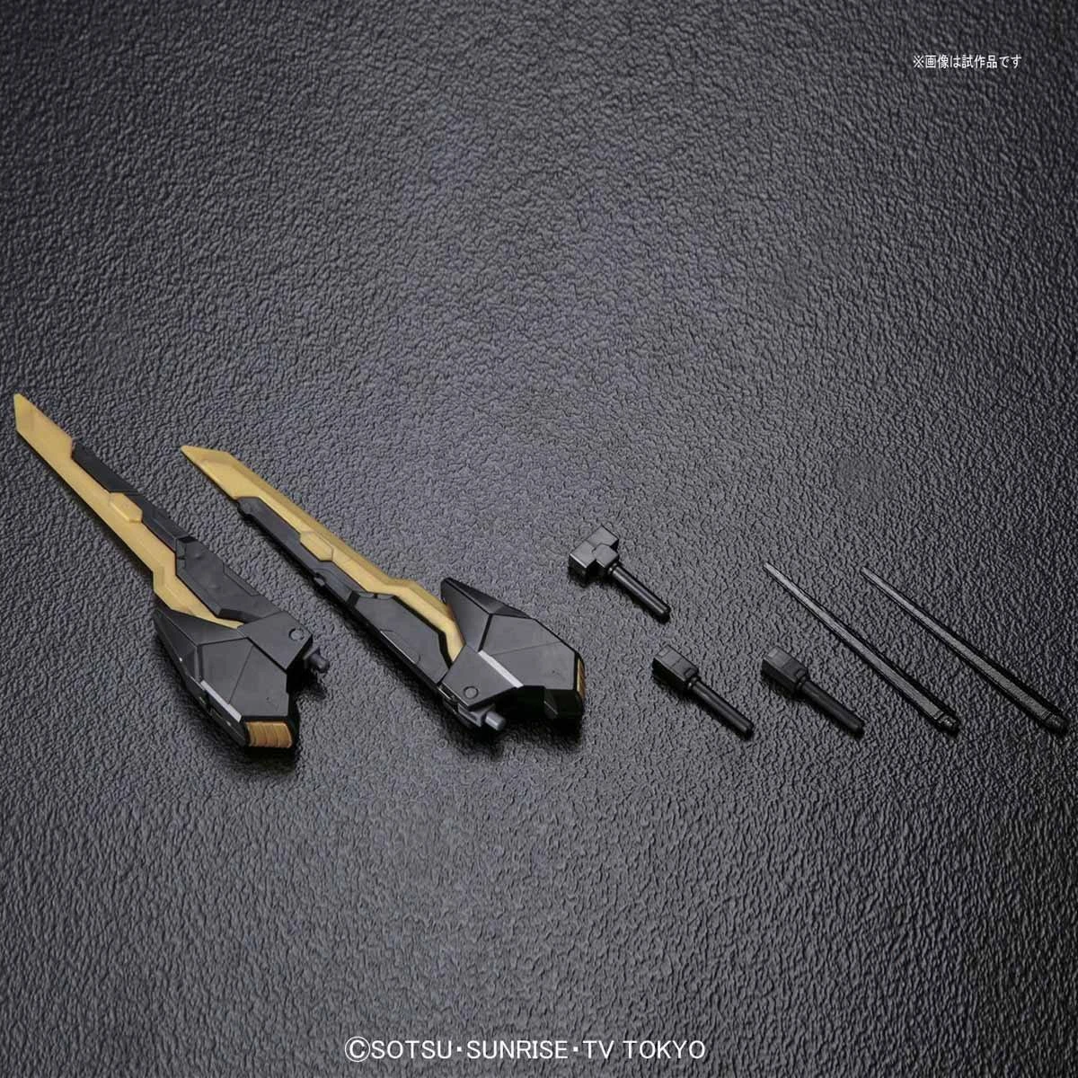 From Gundam Build Fighters Amazing Ready comes the Gundam Schwarzritter! Using the base of Denial Gundam, the Gundam Schwarz Ritter’s back pack can be transformed into two weapons! Hold a sword in each hand to dual wield, or combine to create one giant sword! Set includes two large sabers, three saber grips, and two dagger blades.