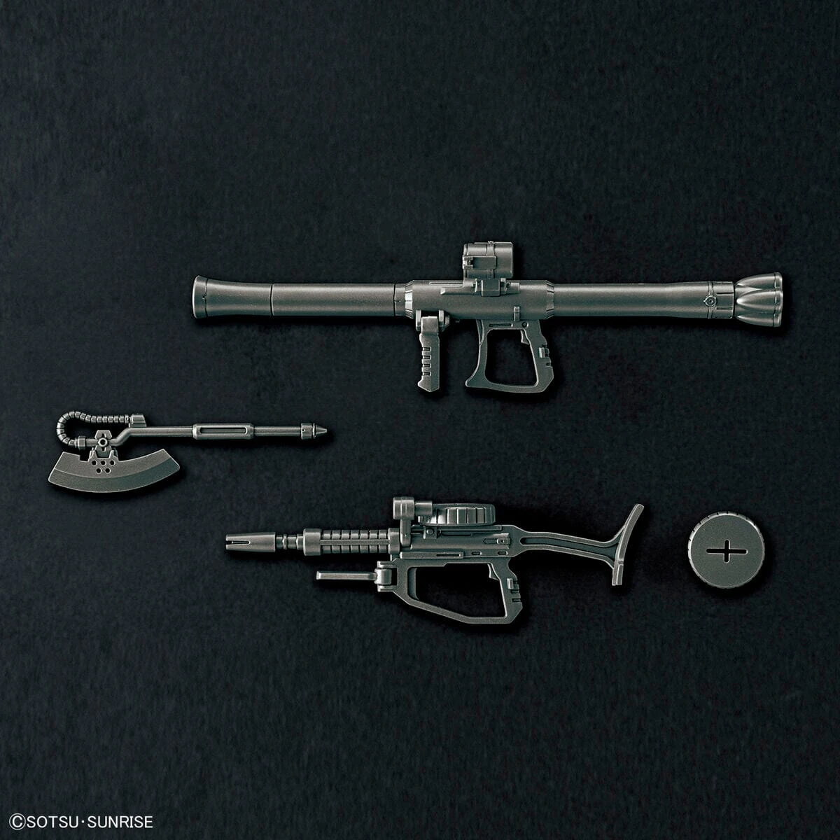 Based on the Mobile Suit Gundam anime series, this MS-06 Zaku II model kit is in 1/144 scale and becomes a fully articulated figure once built.