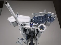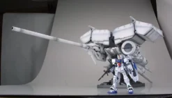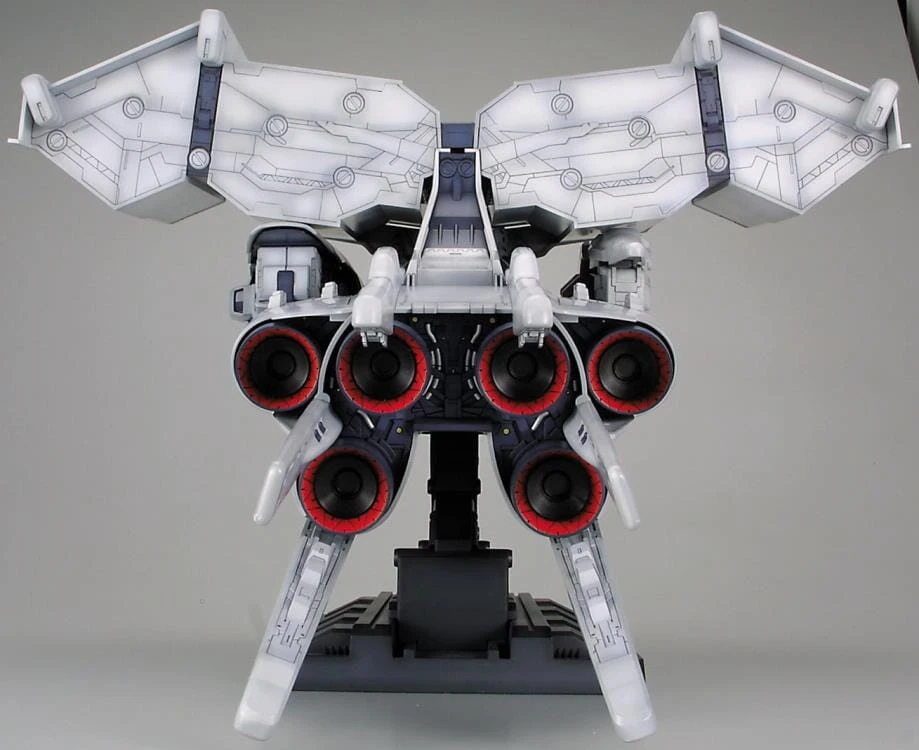 The massive weapons platform featured in Gundam 0083 Stardust Memory has been faithfully reproduced as a 1/144 scale model kit. With a length of 3 Feet and width of almost 2 feet, this monstrous model features unrivaled detail and mechanisms comparable to the highly regarded Perfect Grade series, and is even larger. A small amount of die-cast is integrated in the construction of the fuselage to provide the model kit stability, while screws hold various sections together.
