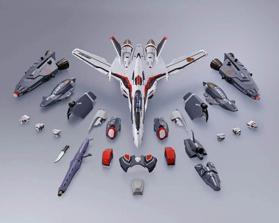From Macross Frontier, the VF-25F Messiah Valkyrie driven by the main character, Alto Saotome, has been revived as a set with super parts. With a variety of accessories, including a pilot figure for the cockpit as well as an Alto Saotome figure, the DX Chogokin VF-25F Messiah Valkyrie Revival Ver. is sure to please any fan.