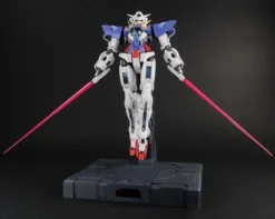 All classic armaments like GN Sword, GN Short and Long Blade, GN Shield, GN Beam Sabers/Daggers are included along with a display stand that can perform aerial poses!