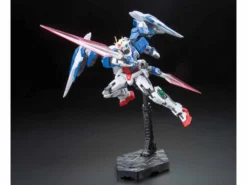 Utilizing real world technology to interpret the futuristic elements of the Gundam universe, the Real Grade series presents its version of the 00 Raiser from the Gundam 00 animated series. The iconic GN drives which act as both an energy transmission and propulsion system are modeled on the designs of the high voltage power transmission lines and propulsion systems found on real world exploration satellites. The 0 Raiser support craft has been remodeled with a more angular design to resemble the linear form of a stealth fighter while weapons and attachments feature design aesthetics based on real specifications of actual aircraft.