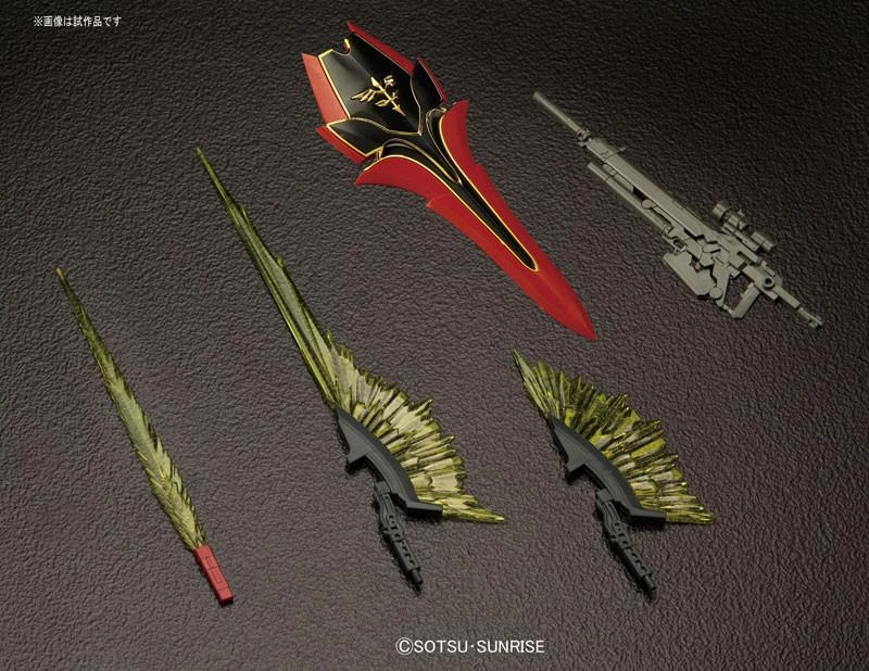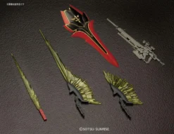 The crimson Mobile Suit Sinanju, piloted by the leader of the Sleeves, Full Frontal, has finally launched in the RG line-up! The model includes movable rear-mounted thrusters, which are based on the thrust control mechanisms of real rocket engines and internal skeletal detailed from drawings by Hajime Katoki. The texture of the brilliant gold engravings have been faithfully recreated as individual parts while the its main body is made in a glossy red plastic. Set includes a beam rifle, beam saber, beam axe, shield, beam effect parts, and interchangable hands.