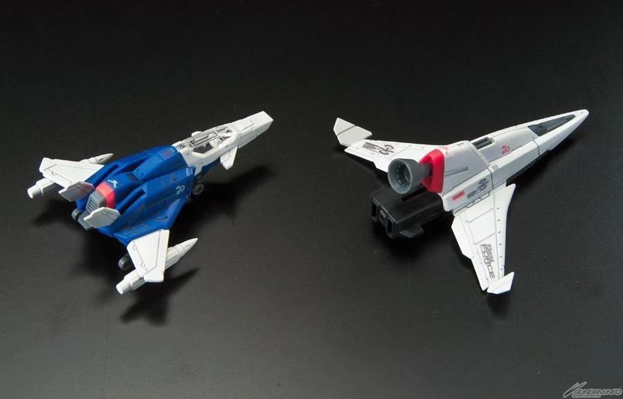 To keep in line with real world machines, the Force Silhoutte wings are modeled after real world aircrafts and fold away in a unique manner. The set includes a beam rifle, 2 knives, 2 beam sabers, an expanding shield, and interchangeable hands.