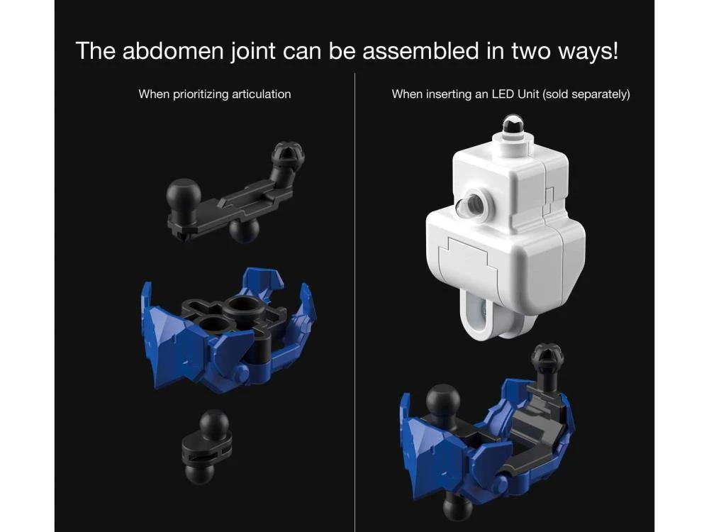 This unique suit’s model kit includes two chest cavity options: a highly articulated chest parts and hollow chest cavity parts to hold the